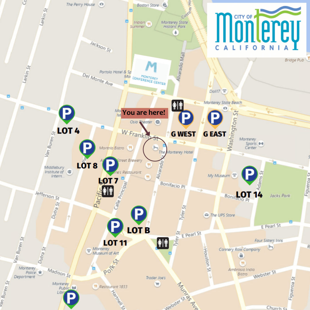 - Pay-by-space pay station, per hour, all day, Visa or MasterCard accepted